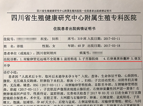 2017年3月,同事的女儿怀孕了,我知道她曾经5年怀不上,便向她父亲打听了她的求孕经历。同事告诉我她是在成都某家医院治疗的,这仿佛黑暗中的一道曙光,抱着再试一次的想法,第二天我便带着泽姐坐车来到成都,找到四川省生殖健康研究中心附属生殖专科医院的黄英医生。