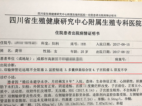 刘女士和龚女士曾经遭遇了同样的病情,都是输卵管堵塞合并多囊卵巢综合征。你努力的时候,转机已经在悄悄发生,2017年3月份在病友介绍下来到四川省生殖健康研究中心附属生殖专科医院治疗。